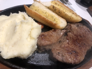 我が家にある鉄板でマッシュポテト&ステーキ&ガーリックトーストです✨
